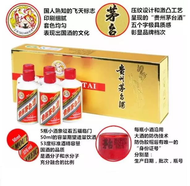 50ml條裝酒是袖珍版飛天茅臺酒。從投料到出廠要經(jīng)過30道工序165個工藝環(huán)節(jié),歷時五年之久。始終如一的品質(zhì)保證,加之茅臺酒不添加任何外來物質(zhì)、以酒勾酒的勾兌工藝是茅臺酒當之無愧成為中國白酒的健康之宗,中國制造的國貨之魂,中國文化的國際之路。