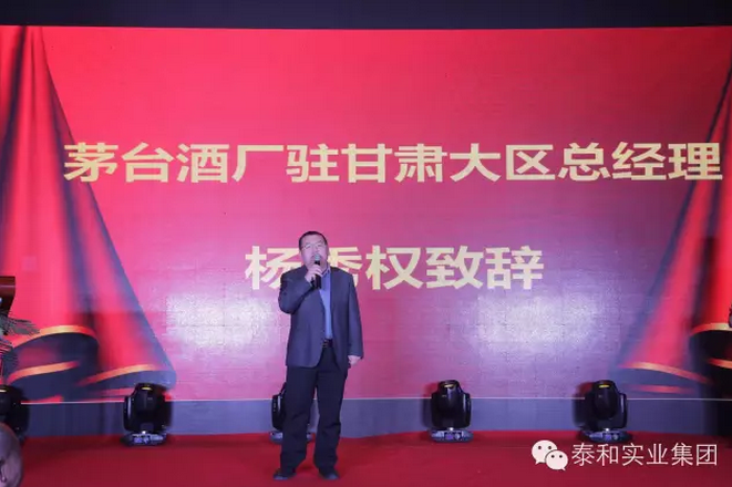 年會(huì)上,與集團(tuán)公司長(zhǎng)久保持良好合作關(guān)系的貴州茅臺(tái)酒廠駐甘肅大區(qū)總經(jīng)理?xiàng)钚銠?quán)到會(huì)祝賀并致賀辭,表達(dá)了對(duì)泰和集團(tuán)的良好祝愿。