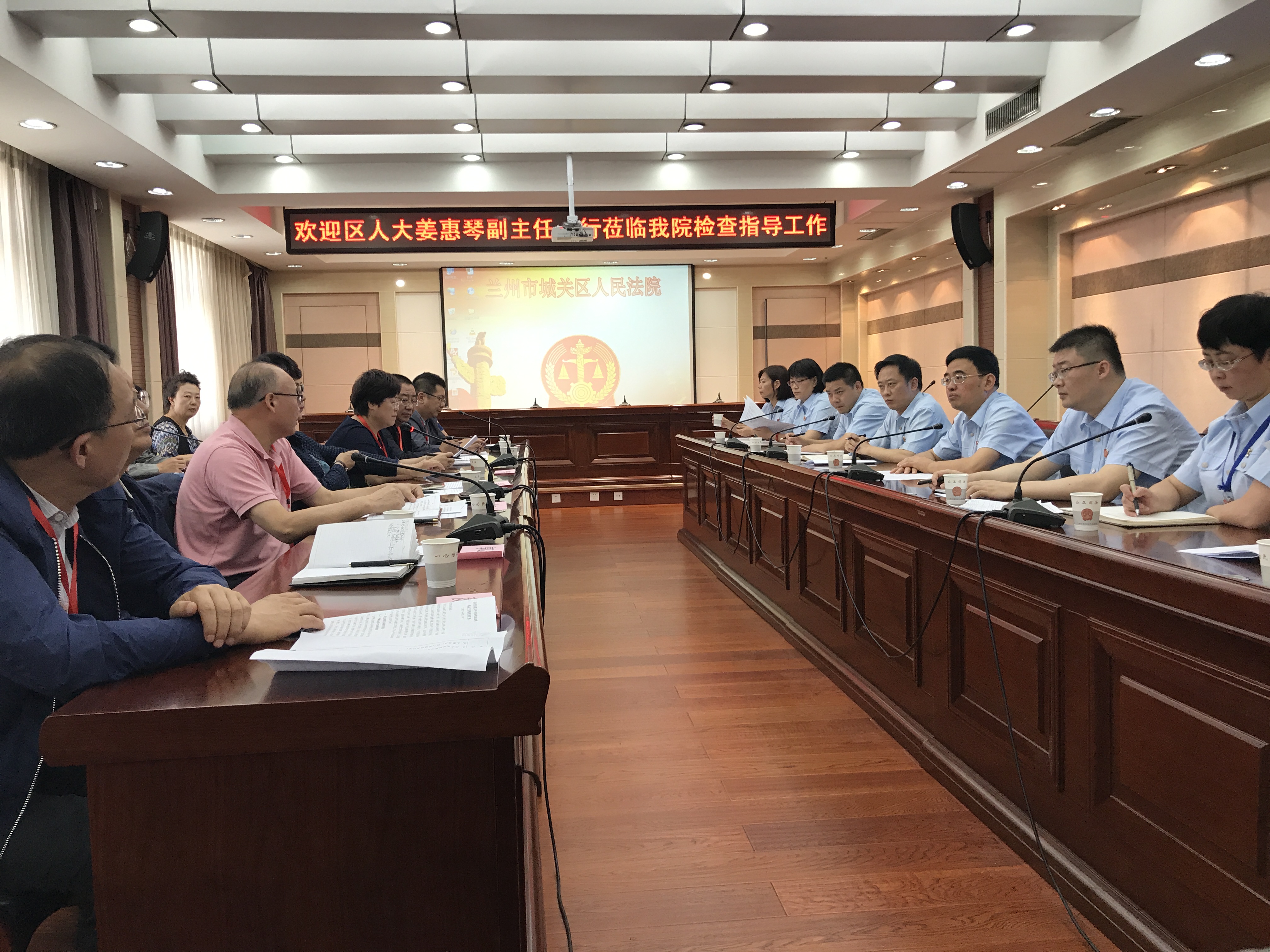 9月7日,蘭州市城關(guān)區(qū)人大常委會(huì),法制委員會(huì)組織市、區(qū)二級(jí)人大代表對(duì)城關(guān)區(qū)人民法院,關(guān)于司法體制改革落實(shí)工作情況進(jìn)行專項(xiàng)檢查活動(dòng)。城關(guān)區(qū)人大常委會(huì)副主任姜惠琴,李春玲,徐安全,楊建中,市檢察院副檢察長(zhǎng)王銳等20名代表參加檢查活動(dòng)。我司領(lǐng)導(dǎo)參加此次活動(dòng)。
