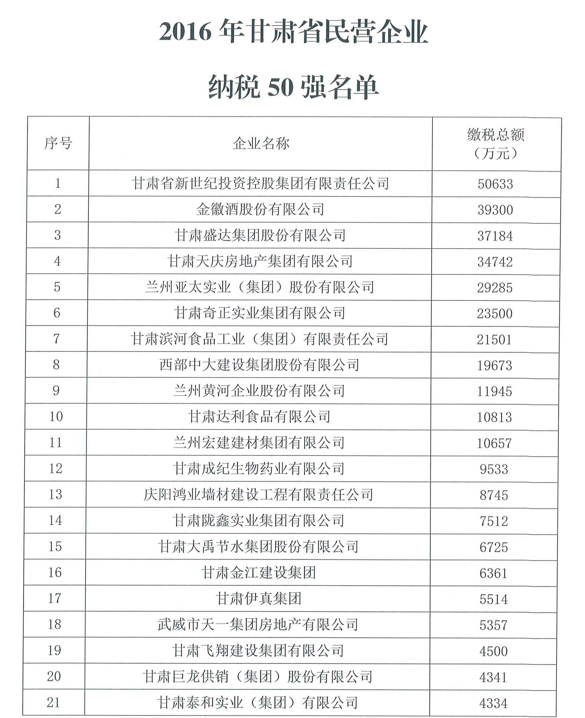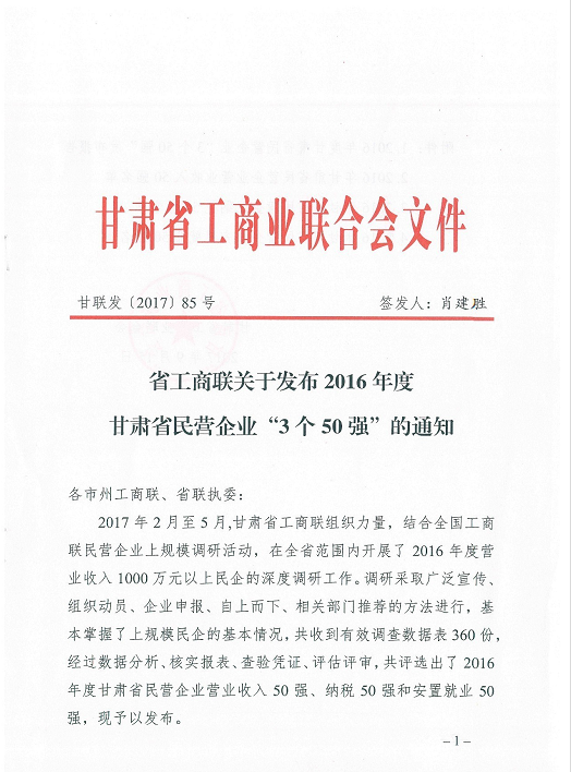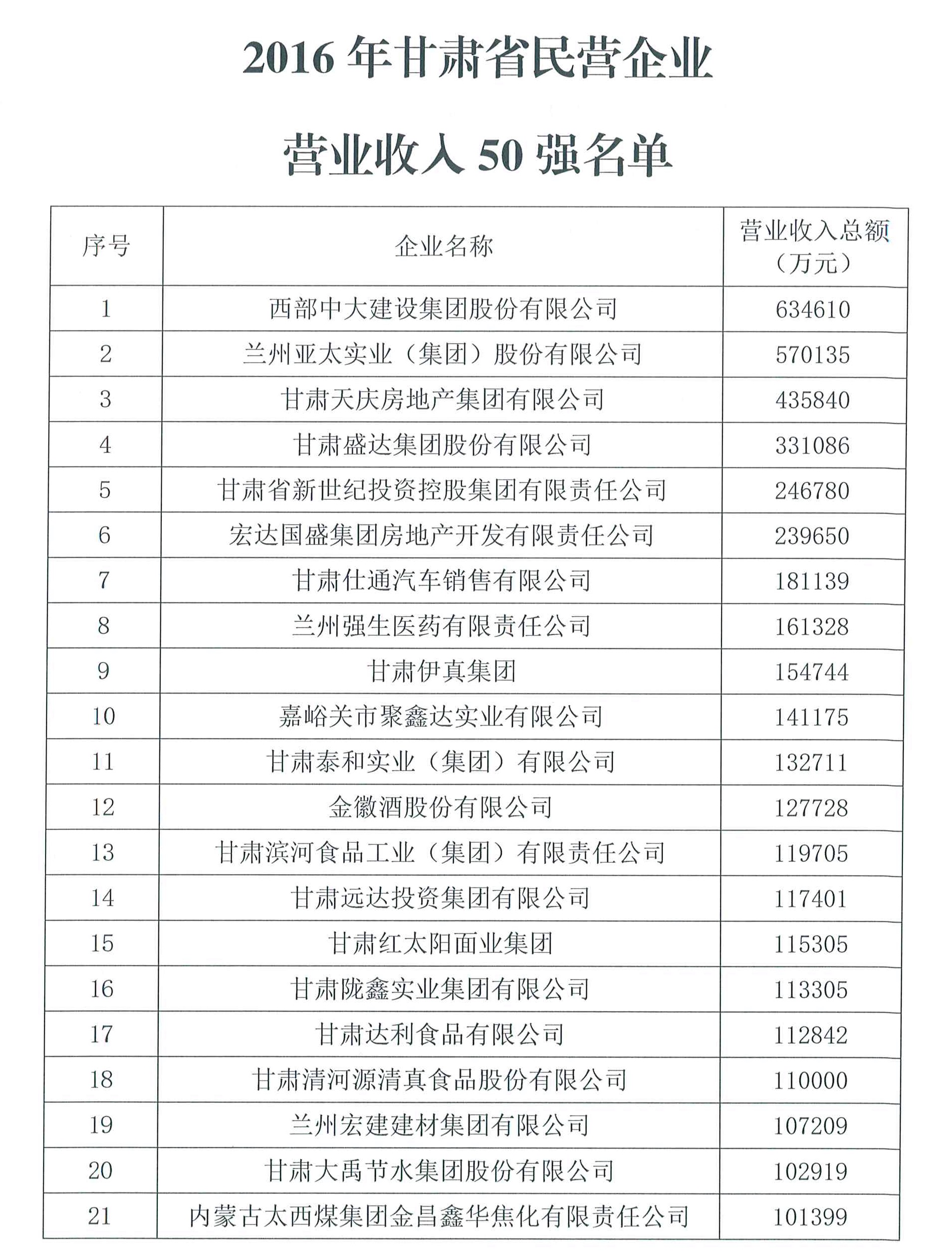 據(jù)了解,2017年2月至5月,甘肅省工商聯(lián)組織力量,結(jié)合全國工商聯(lián)民營企業(yè)上規(guī)模調(diào)研活動,在全省范圍內(nèi)開展了2016年度營業(yè)收入1000萬元以上民企的深度調(diào)研工作。調(diào)研采取廣泛宣傳、組織動員、企業(yè)申報、自上而下、相關(guān)部門推薦的方法進行,基本掌握了上規(guī)模民企的基本情況,共收到有效調(diào)查數(shù)據(jù)表360份,經(jīng)過數(shù)據(jù)分析、核實報表、查驗憑證、評估評審,共評選出了2016年度甘肅省民營企業(yè)營業(yè)收入50強、納稅50強和安置就業(yè)50強。