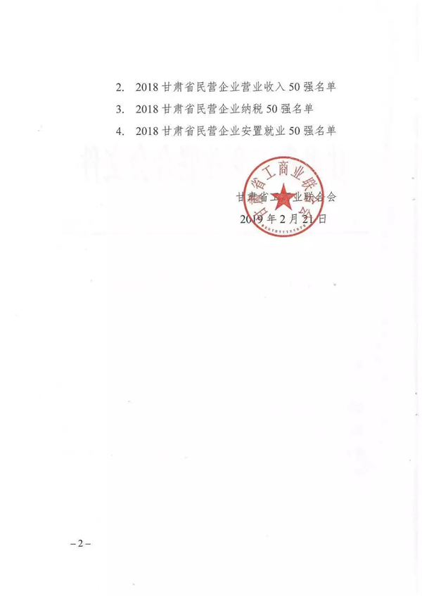 ★ 2018甘肅省民營企業(yè)營業(yè)收入50強榜單 ★