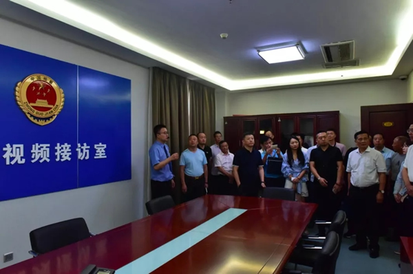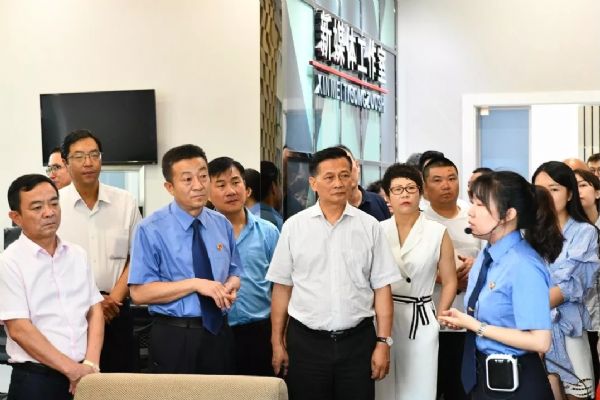 民營企業(yè)家們?cè)谑性狐h組書記、檢察長張學(xué)軍和黨組成員、副檢察長蒲軍的陪同下,參觀了市院12309檢察服務(wù)中心、案管大廳、新媒體工作室、公益訴訟調(diào)查指揮中心和黨建活動(dòng)中心等檢察辦公辦案場(chǎng)所,現(xiàn)場(chǎng)聽取工作人員演示講解,近距離感受檢察工作流程。代表嘉賓不時(shí)詢問檢察機(jī)關(guān)的各項(xiàng)工作職能,張學(xué)軍檢察長用平實(shí)易懂的語言詳細(xì)進(jìn)行了解答。