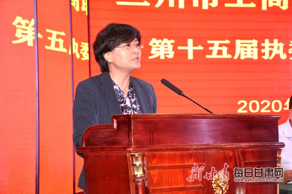 ▲ 蘭州市政府副市長、市工商聯(lián)主席、市總商會會長馬彩云作工作報告