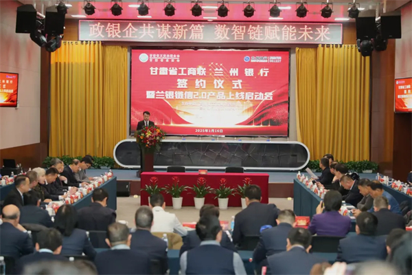 1月16日下午,甘肅省工商聯(lián)與蘭州銀行簽約儀式暨蘭銀鏈信2.0產(chǎn)品上線啟動儀式在蘭州舉行。省工商聯(lián)主席、省總商會會長郭奇志,省委統(tǒng)戰(zhàn)部副部長,省工商聯(lián)黨組書記、常務副主席劉全平,省發(fā)改委二級巡視員孫瑞民,蘭州銀行黨委書記、董事長許建平出席會議。省工商聯(lián)黨組成員、秘書長宋學勤主持。省工商聯(lián)副主席、省總商會副會長,部分省級商會、民營企業(yè)代表,部分市州工商聯(lián)負責人共100余人參加會議。